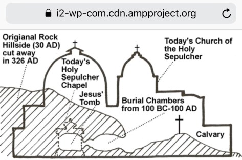 The Scriptures testify to the empty tomb of Jesus the Messiah and His bodily resurrection from the dead. The Church of the Holy Sepulchre has been overlayed with centuries of construction, damage from wars; the Crusades; earthquake damage, lots of church building and ornate and elaborate decoration, and gaudy statuary and idolatry, in order to mark spots of certain events surrounding the crucifixion of Christ, to accommodate pilgrims.