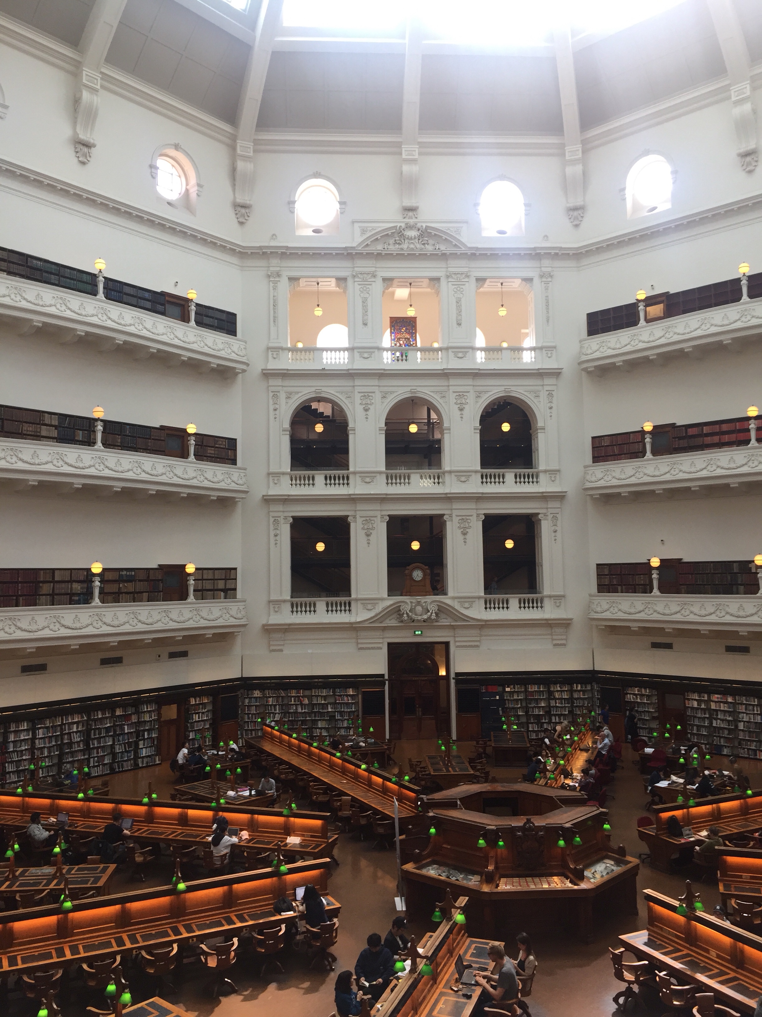 Unlike plain beauty, a Melbourne landmark and cultural icon, the State Library is a magnificent 19th-century building with some of the city’s most beautiful heritage interiors. The “cathedral” reading room – the glass dome, 6 storeys with balconies and arches, the wooden chairs and benches with garnished green lamps. It is another triumph for Sir John Monash. The Shakespeare window on the 5th floor portrays a thoughtful Shakespeare with depiction of the “seven ages of man”. And above it all, the exhibitions showcasing the stories of Victoria and its people. This library just has so much to offer, to the locals, to the tourists……one way or another, we all have our desires to know the world – to see it, to classify it and to make sense of it.